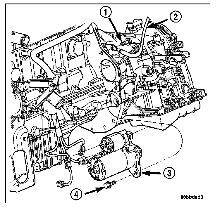 1. Reinstall starter motor into vehicle lower engine compartment.