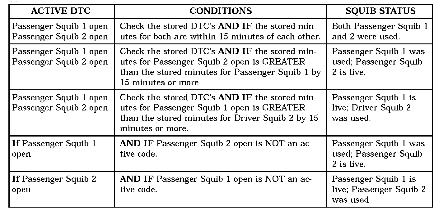 AIRBAG SQUIB STATUS1. Using a DRBIII(R) read Airbag DTC's If the following active codes are present: