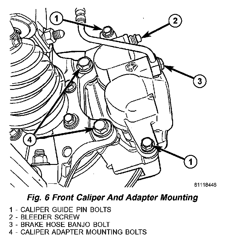 Fig. 6 Front Caliper And Adapter Mounting: