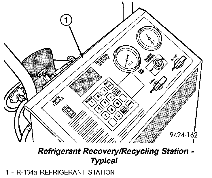 When servicing the A/C system, a R-134a refrigerant recovery/recycling/charging station that meets SAE standard J2210 must be used. Contact an automotive service equipment supplier for refrigerant recovery/recycling/charging equipment. Refer to the operating instructions supplied by the equipment manufacturer for proper care and use of this equipment.