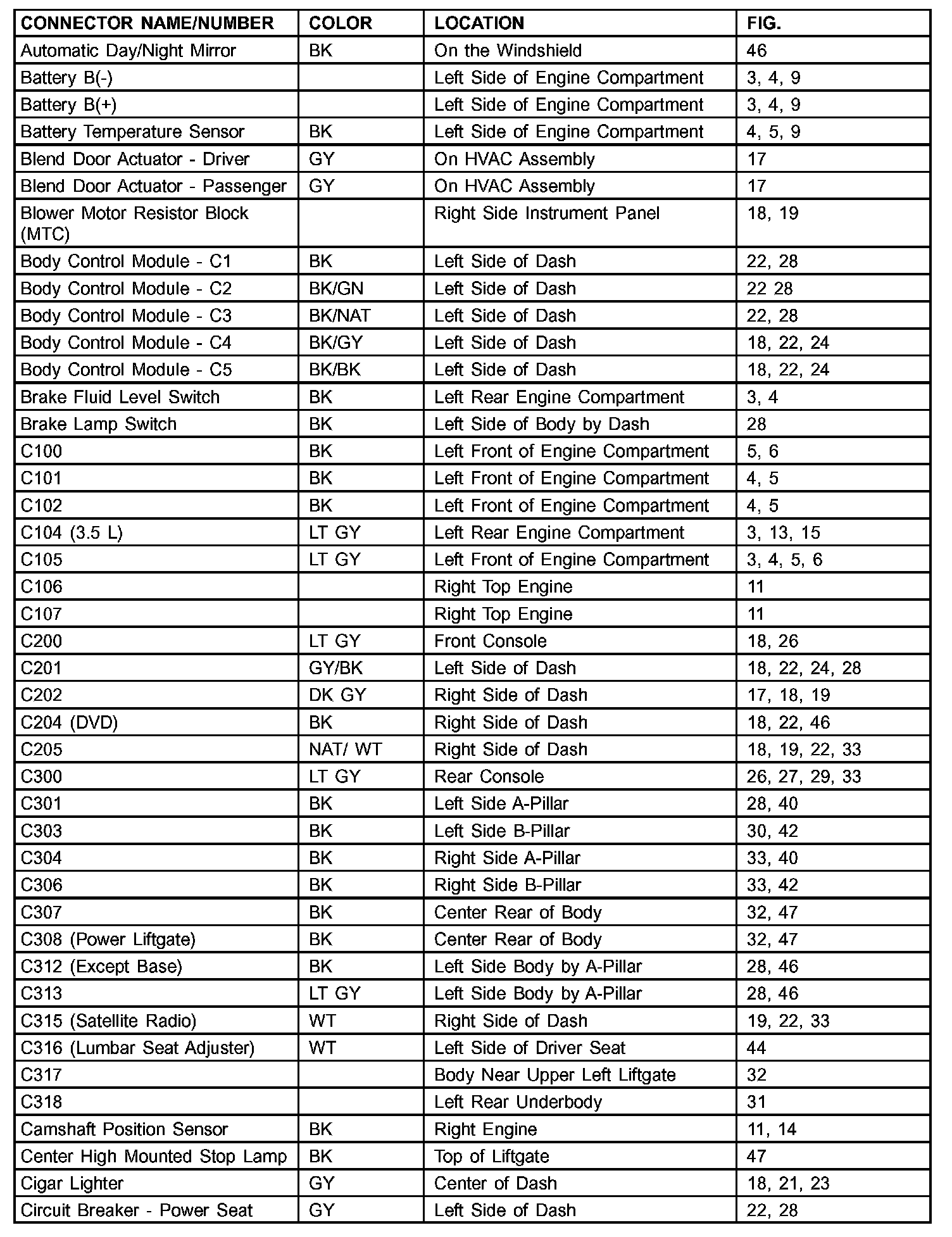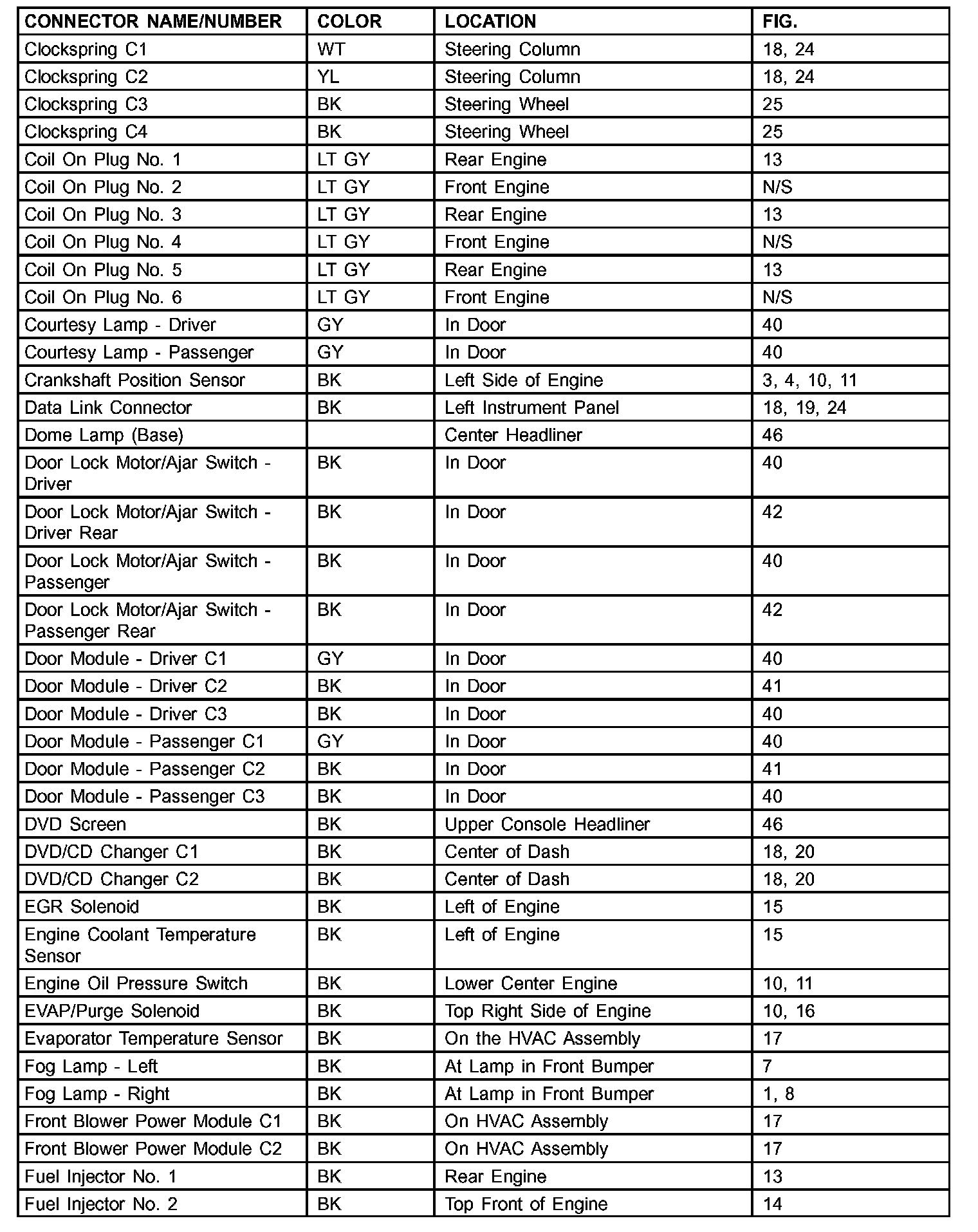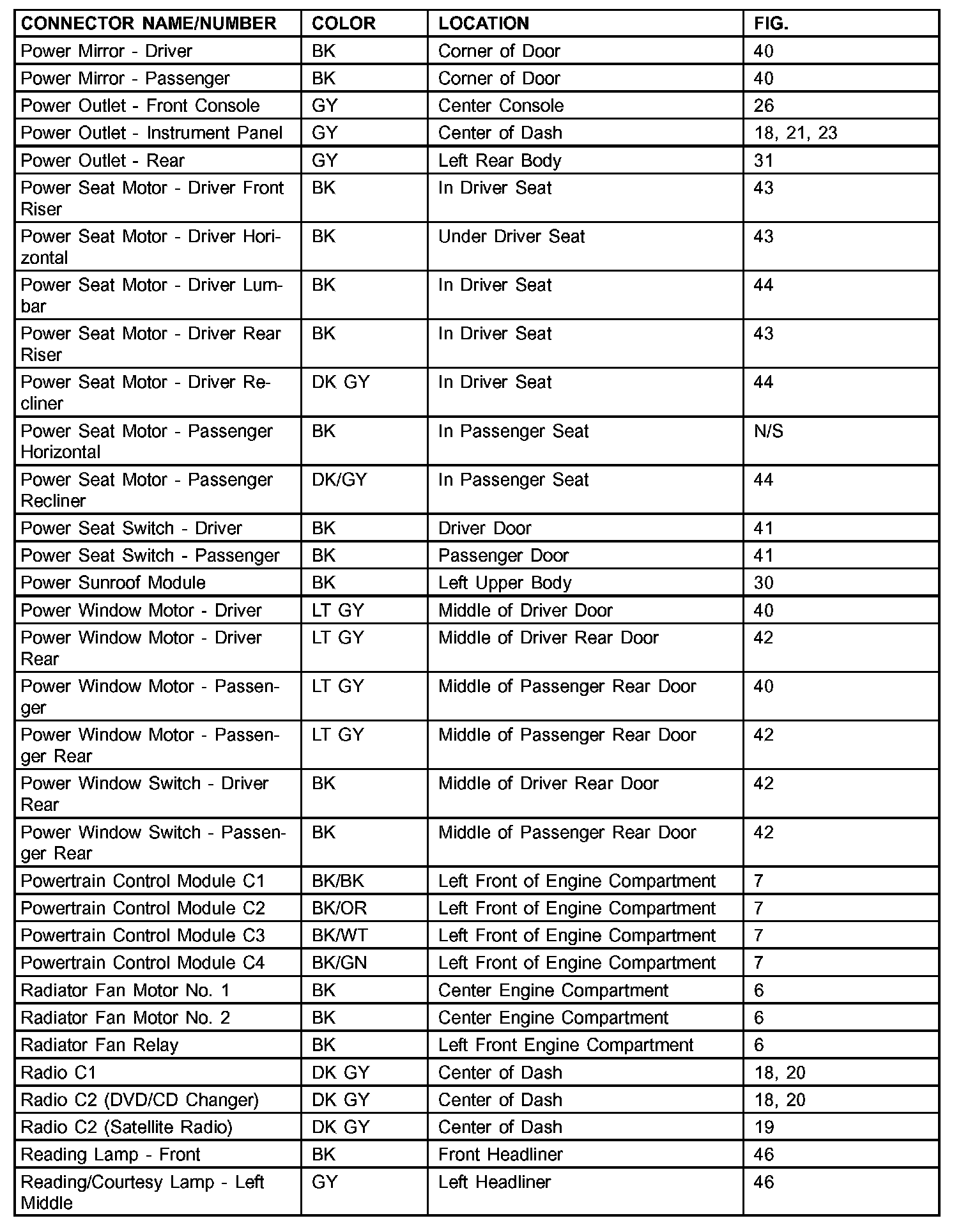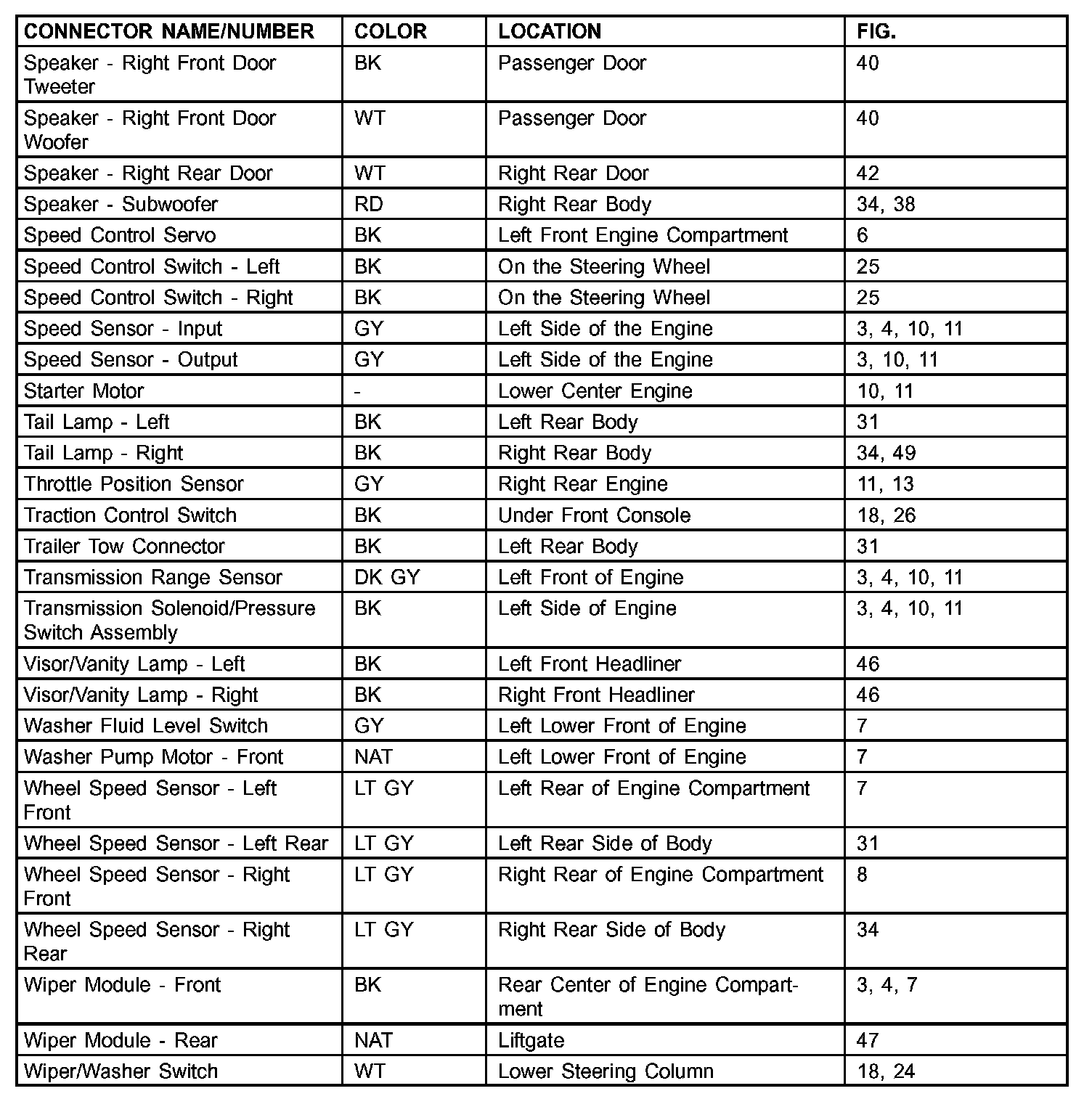 PLEASE NOTE:If a link on the index chart to a figure is not provided, that means that the connector and/or figure in question does NOT apply to the vehicle model selected.