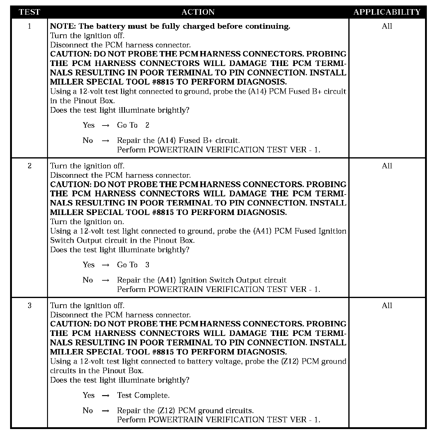 Checking the PCM Power and Ground Circuits
