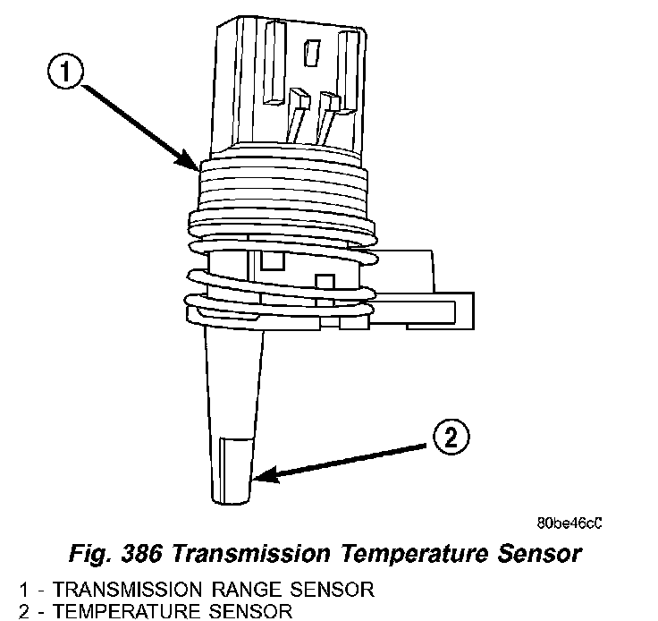 The TRS (1) (Fig. 386) also has an integrated temperature sensor (thermistor) (2) that communicates transaxle temperature to the TCM and PCM.