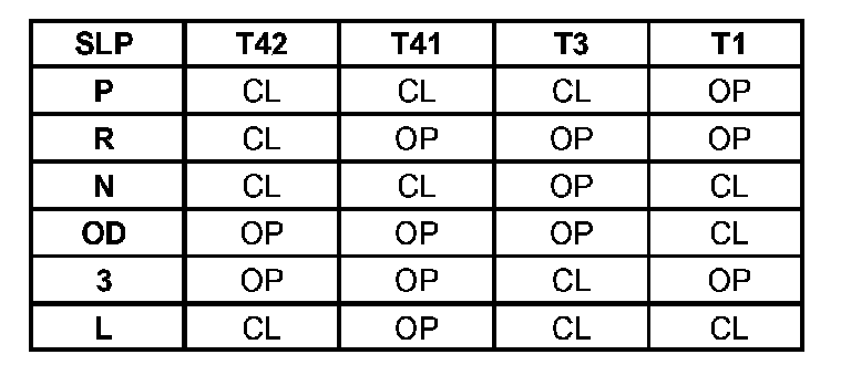 Since there are four switches, there are 16 possible combinations of open and closed switches (codes). Seven of these codes are related to gear position and three are recognized as between gear codes. This results in six codes which should never occur. These are called invalid codes. An invalid code will result in a DTC, and the PCM/TCM will then determine the shift lever position based on pressure switch data. This allows reasonably normal transmission operation with a TRS failure.