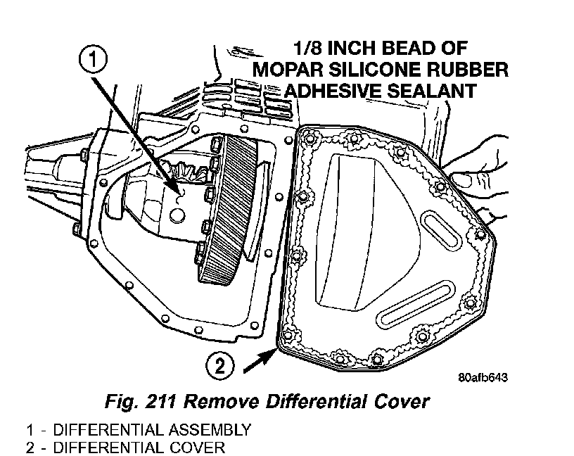 1. Remove the differential cover and bolts (Fig. 210) (Fig. 211).