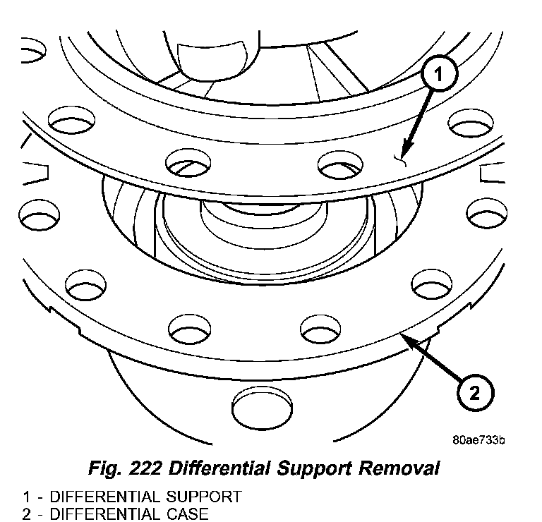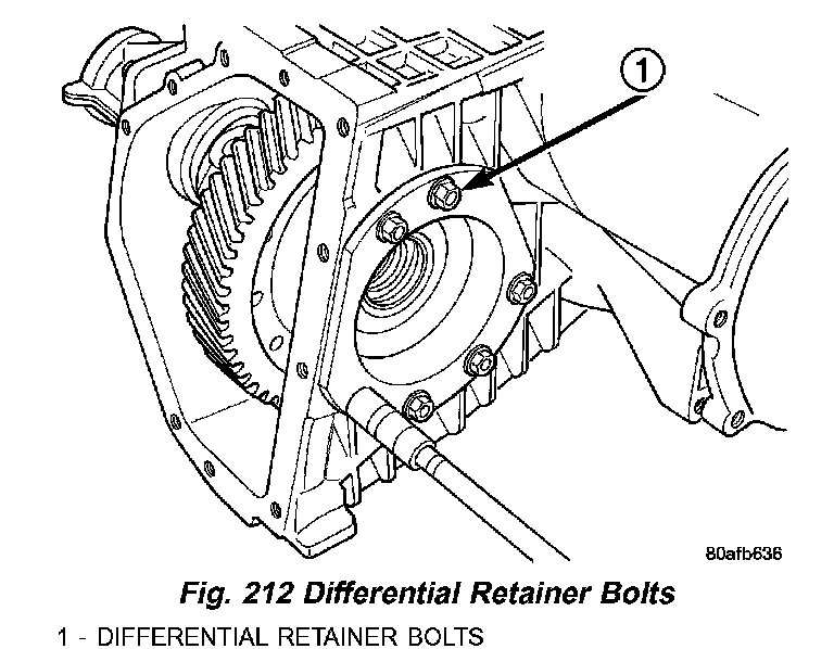 2. Remove the differential bearing retainer and bolts (Fig. 212) (Fig. 213).