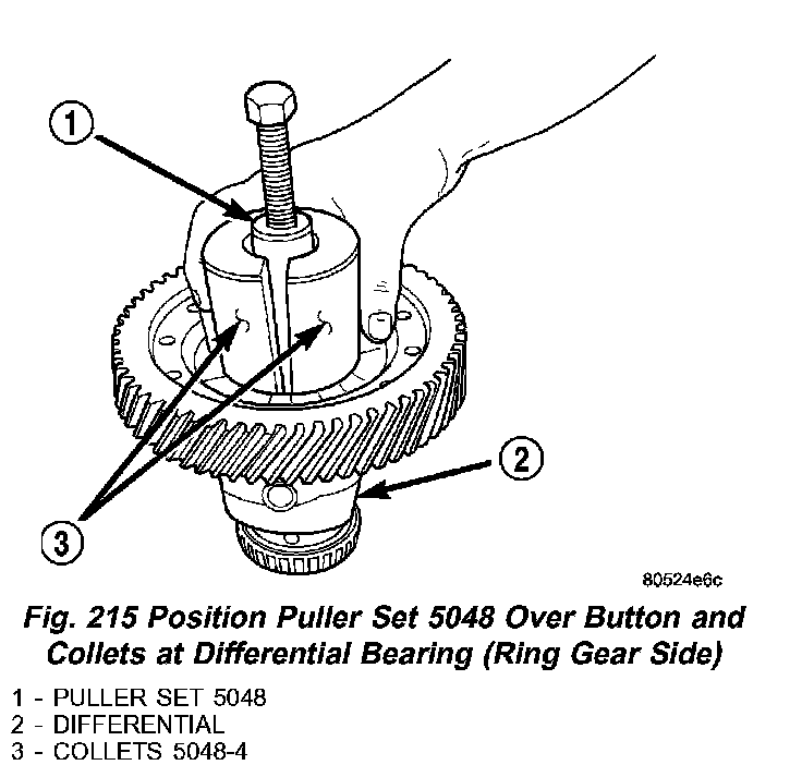 Fig. 215 Position Puller Set 5048 Over Button and Collets at Differential Bearing (Ring Gear Side):
