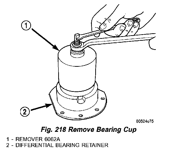 7. Using Remover 6062A, remove the differential bearing race from the bearing retainer (Fig. 217) (Fig. 218).