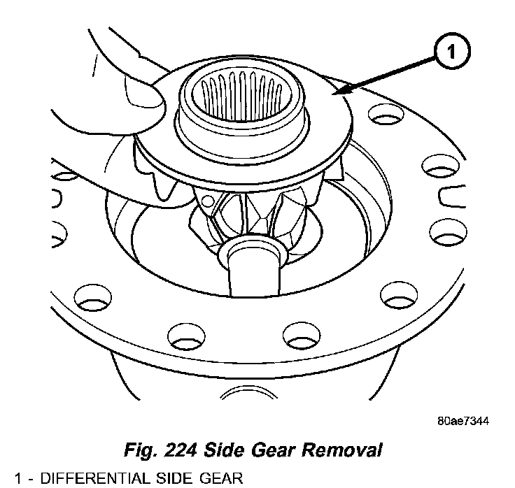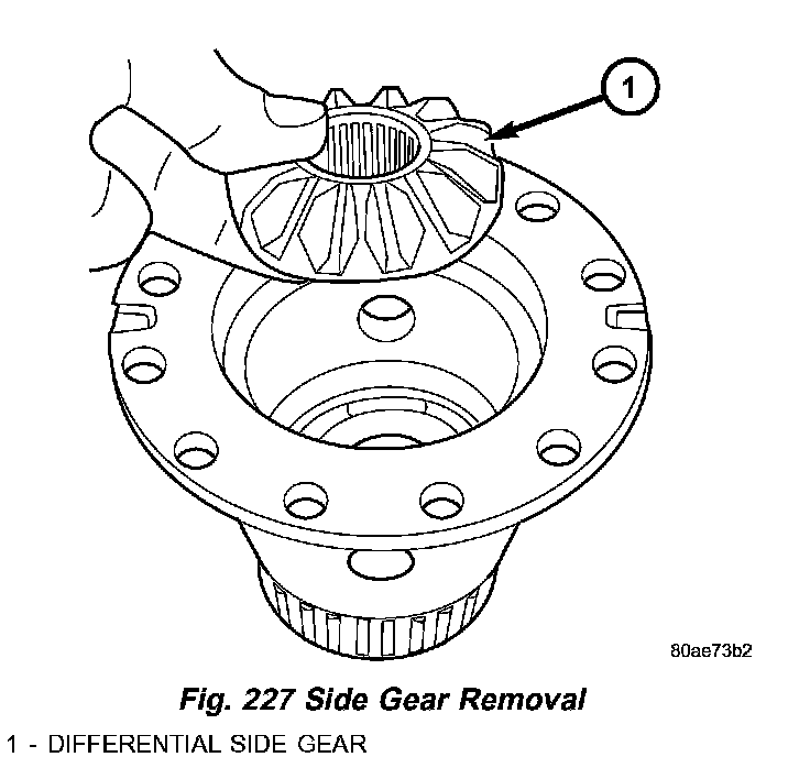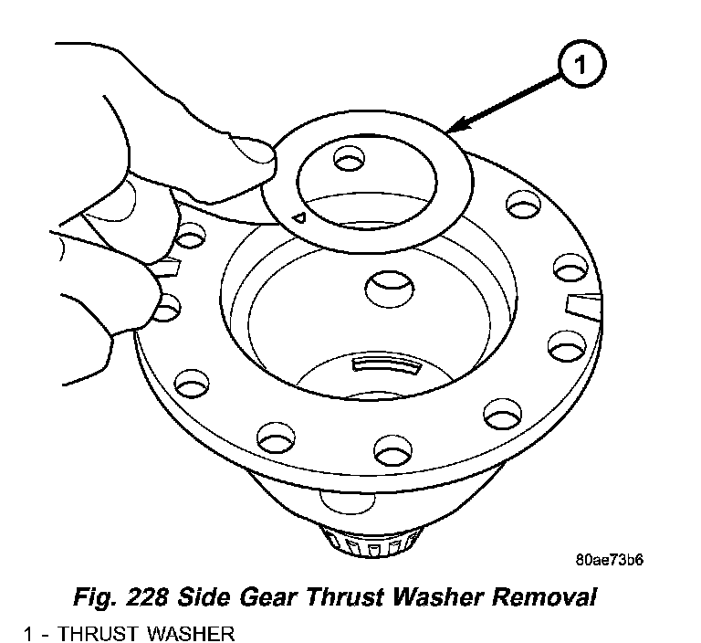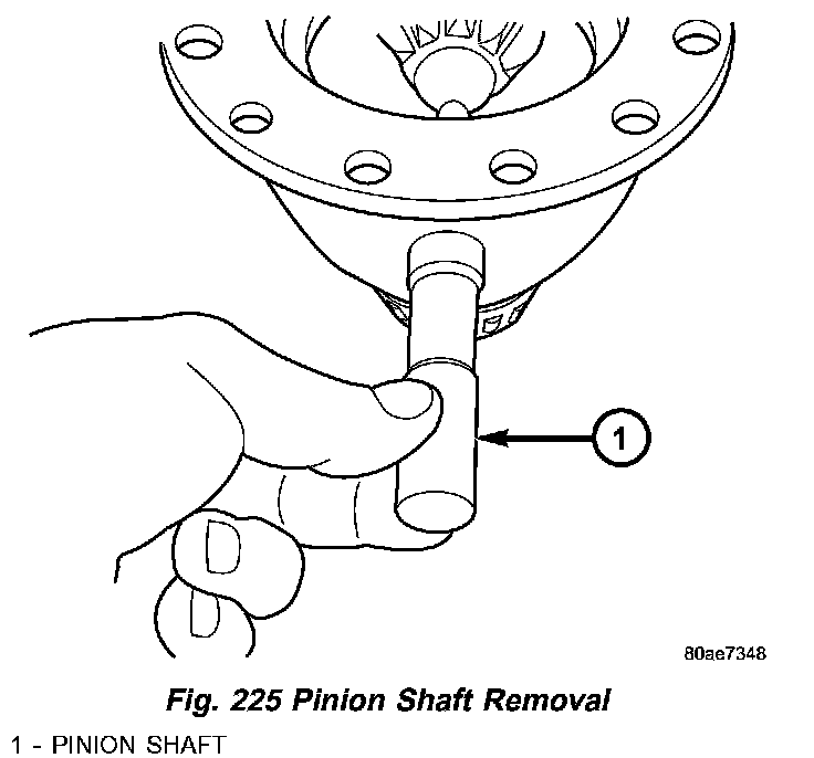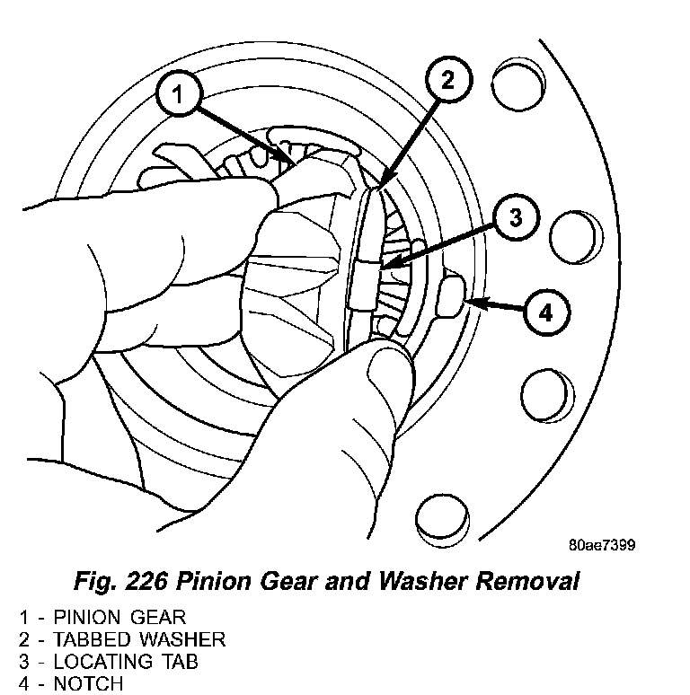 15. Remove pinion gears and tabbed washers (Fig. 226).