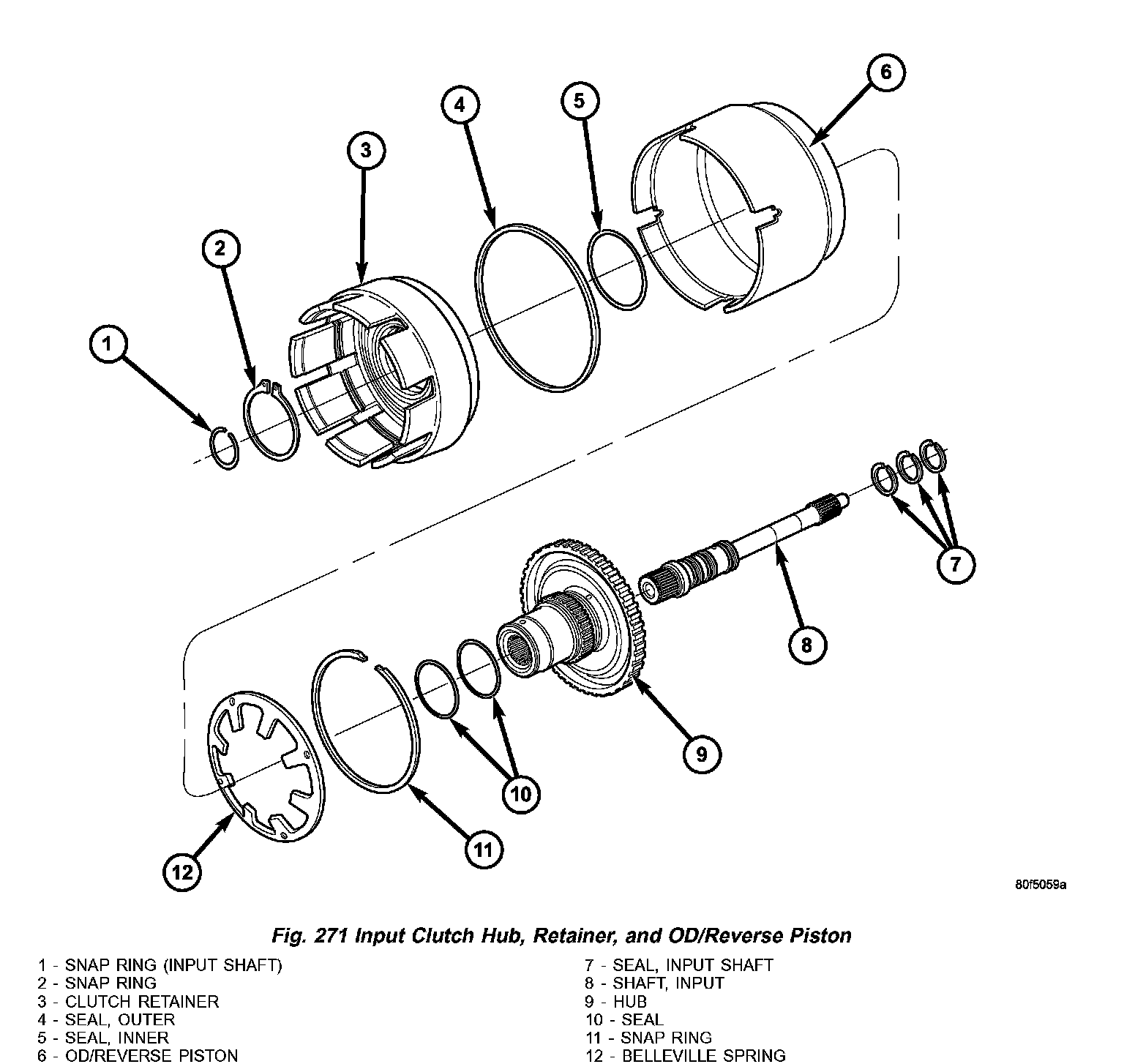 Fig. 271 Input Clutch Hub, Retainer, and OD/Reverse Piston: