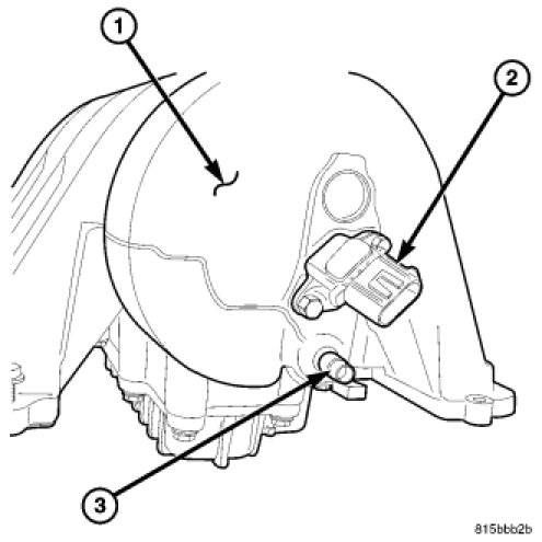 The Manifold Absolute Pressure (MAP) sensor (2) is located at the rear of the intake manifold (1).