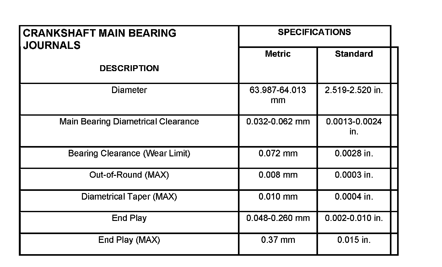 Outer Main Cap Bolts 27 Nm (20 Ft. Lbs.) + 1/4 Turn