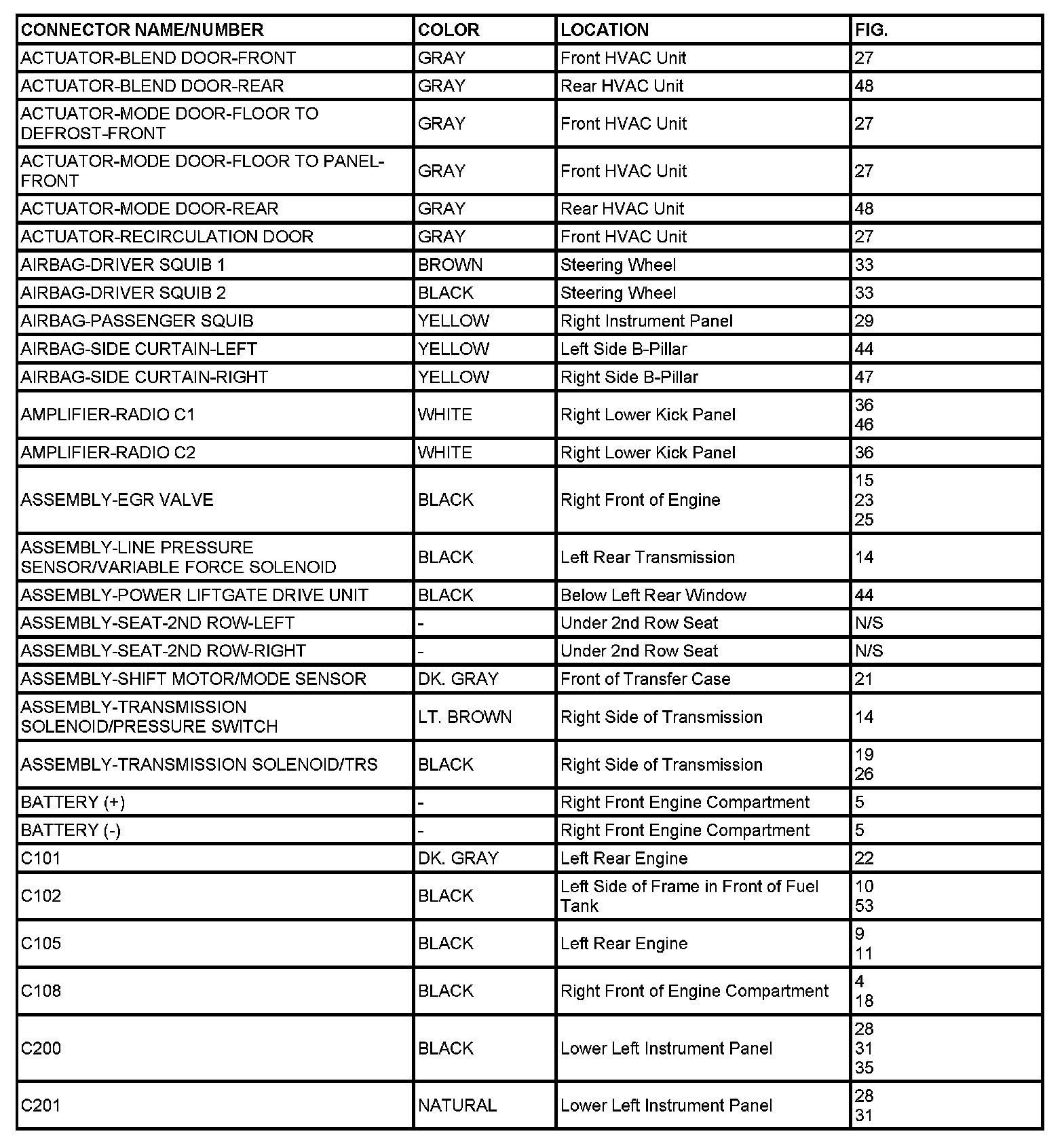If a link on the index chart to a figure is not provided, that means that the connector and/or figure in question does NOT apply to the vehicle model selected.
