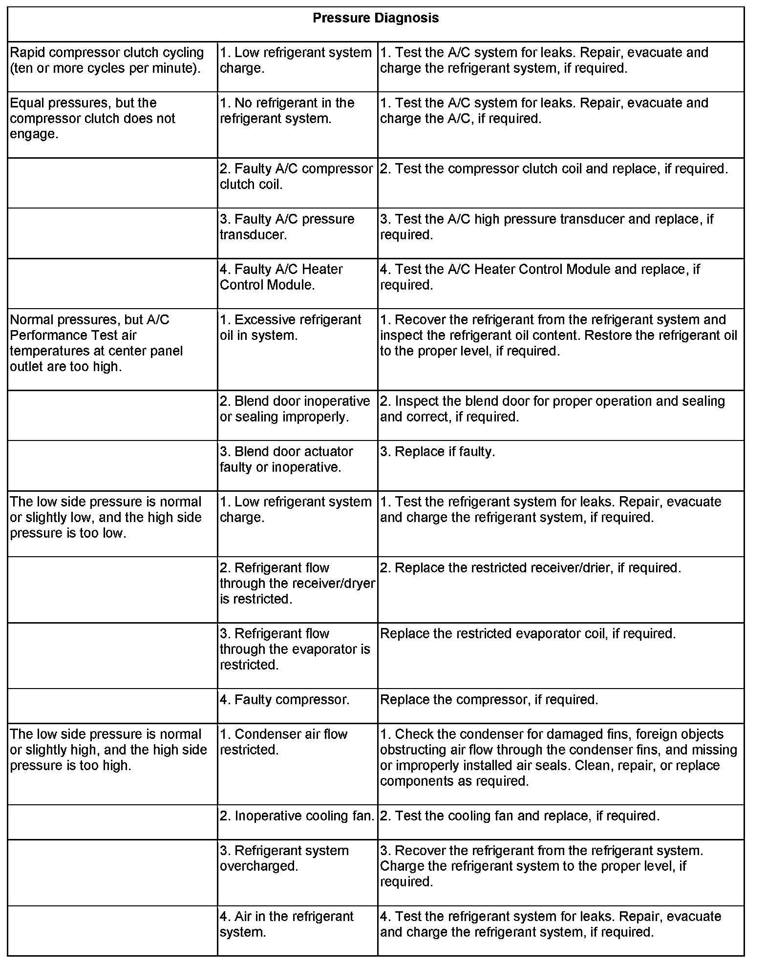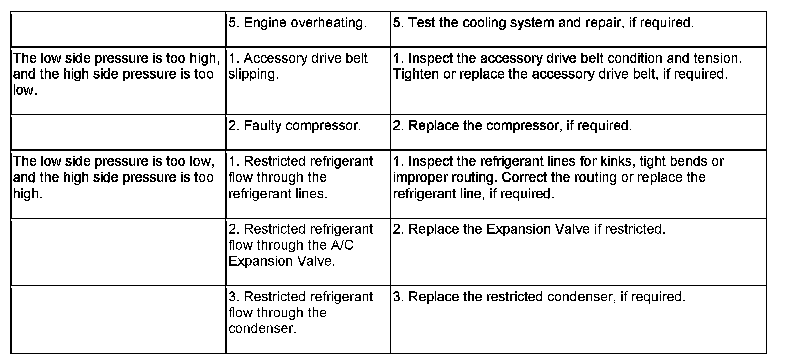 9. Compare the compressor discharge pressure to the Performance Temperature and Pressure chart. If the compressor discharge pressure is high, see the Pressure Diagnosis chart.