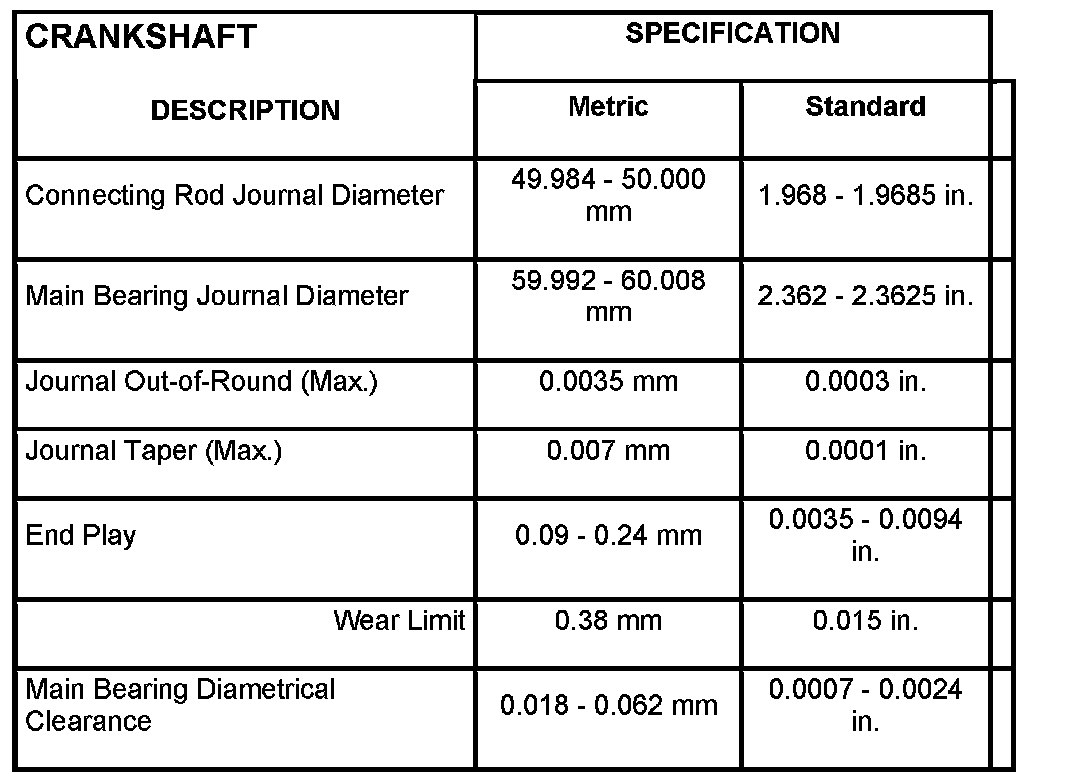 - After the main bearing bed plate is installed, check the crankshaft turning torque. The turning torque should not exceed 5.6 Nm (50 in. lbs.).