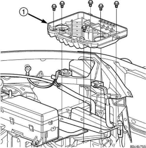 13. Install the battery tray (1).