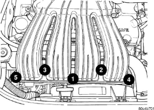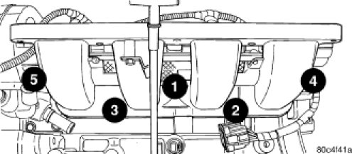 If equipped with an aluminum manifold, tighten fasteners to 28 Nm (250 in. lbs.) in sequence shown.