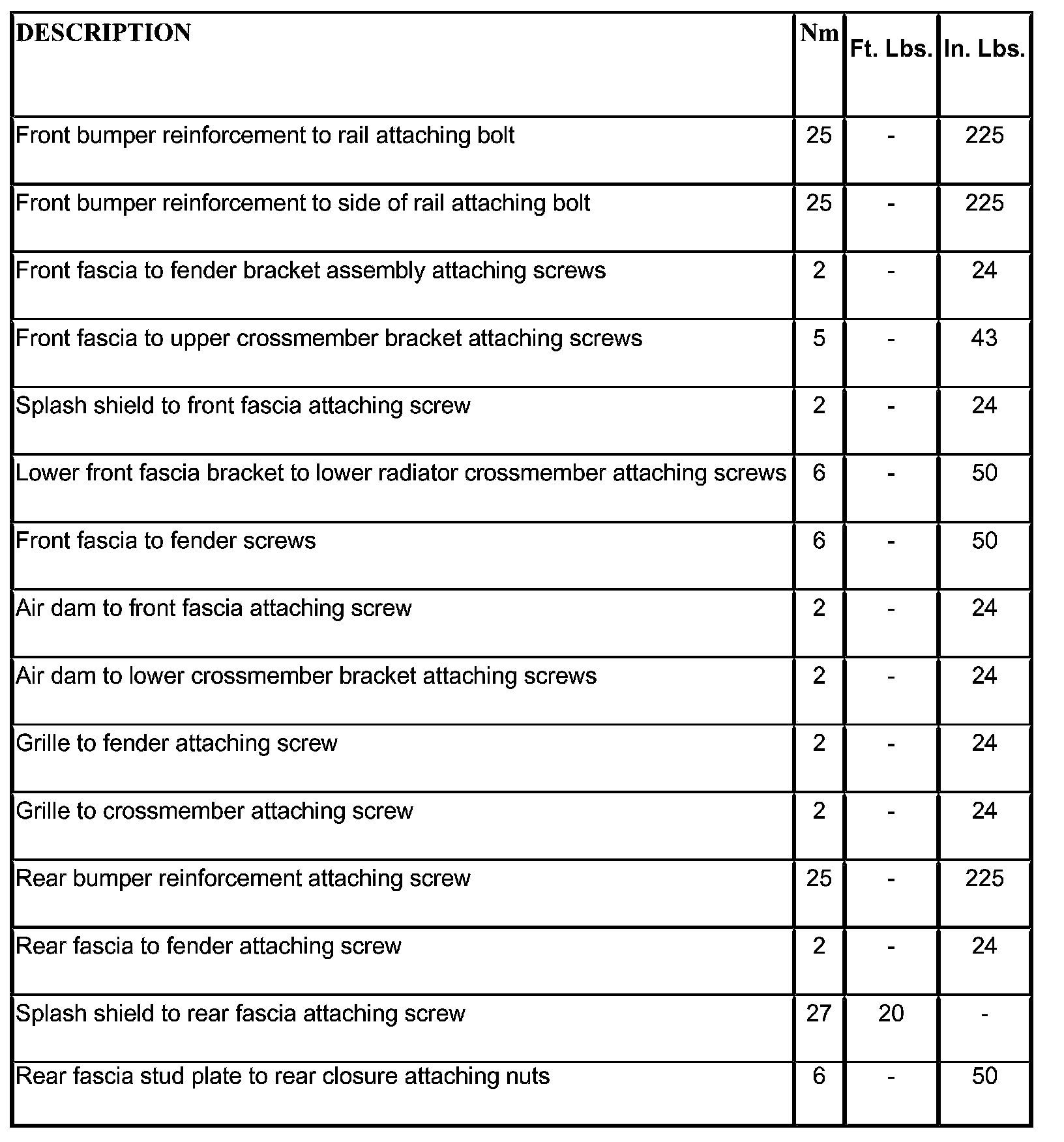 Bumper: Specifications