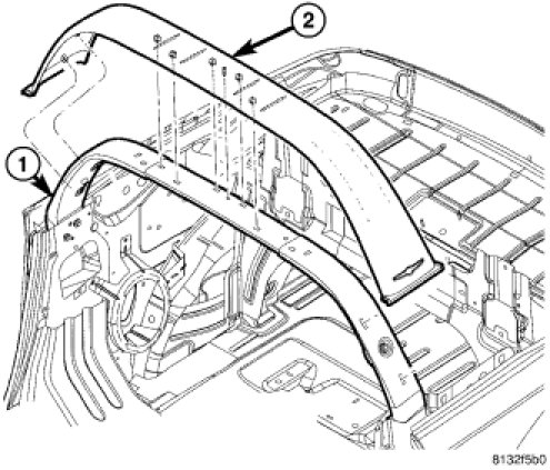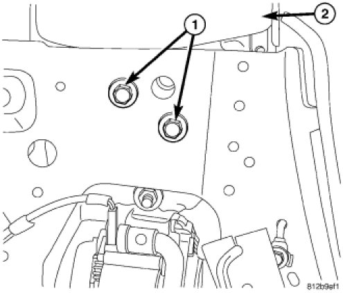 2. Install two bolts (1) on each side of sport bar rail (2).
