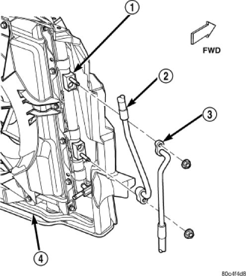 NOTE: Be certain that each of the radiator and condenser air seals are installed in their proper locations. These air seals are required for the A/C and engine cooling systems to perform as designed.