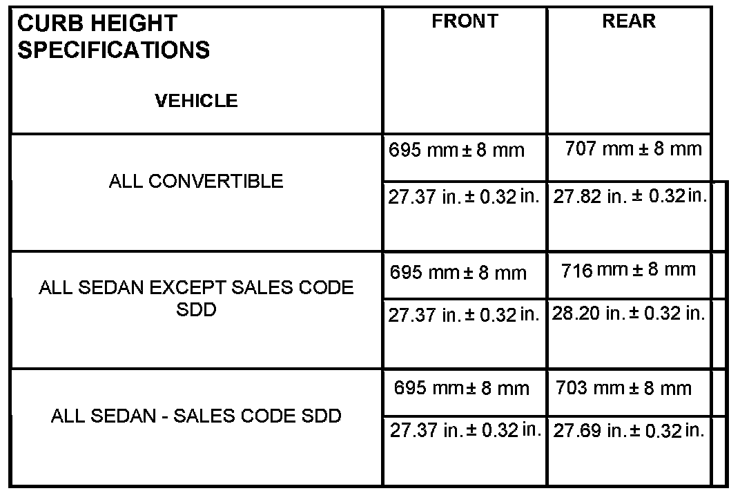 4. Compare the measurements to specifications listed in the following CURB HEIGHT SPECIFICATIONS chart.