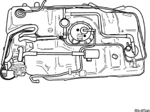 8. Fill fuel tank. Use the scan tool to pressurize the fuel system. Check for leaks.