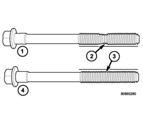 NOTE: The Cylinder head bolts should be examined BEFORE reuse. If the threads are necked down, the bolts should be replaced.