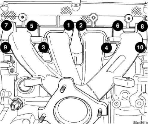 If equipped with an aluminum manifold, tighten fasteners to 28 Nm (250 in. lbs.) in sequence shown.