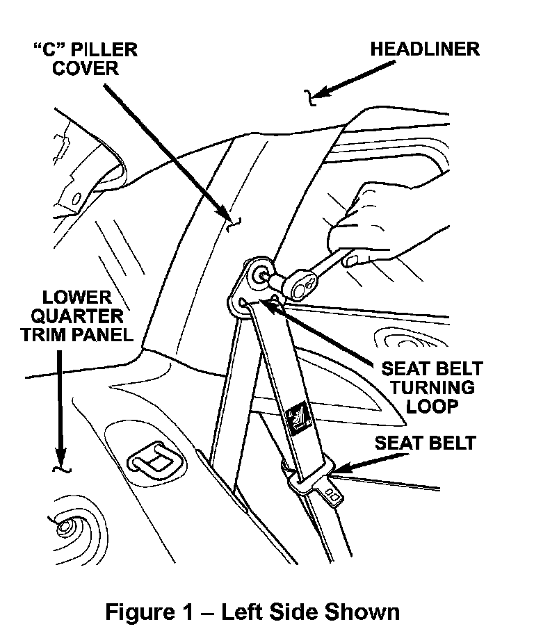 5. Remove the right and left seatbelt turning loop bolts (Figure 1).