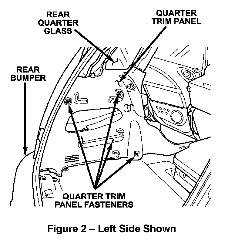 11. Remove the right and left side lower quarter trim panels (Figure 2).
