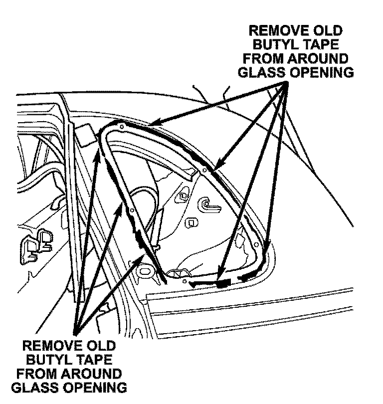15. Use 3M General Purpose Adhesive Cleaner (P/N 08987) or equivalent to clean any remaining butyl from the edge of the quarter window openings.