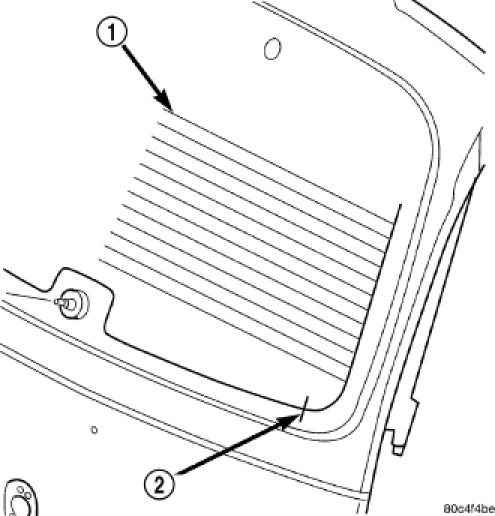 NOTE: Blade should be parked along bottom rear window defogger grid line. Vertical tick mark shows park tolerance.