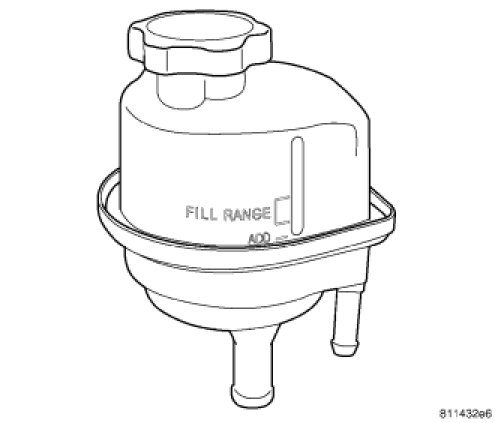 The fluid level can be read on the exterior of the power steering fluid reservoir. The fluid level should be within the "FILL RANGE" when the fluid is at normal ambient temperature, approximately 21� C to 27� C (70� F to 80� F).