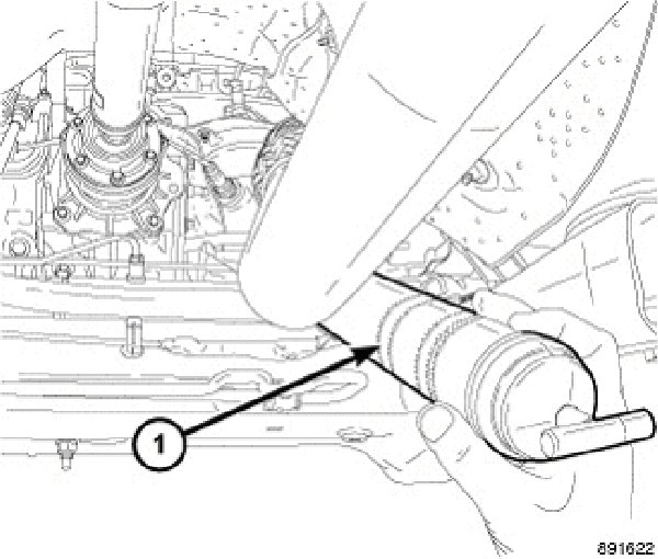 8. Use a gear lube pump (1) to fill PTU with 0.8L (1.7 Pints.) of Mopar 75W-90 Gear and Axle Lubricant.