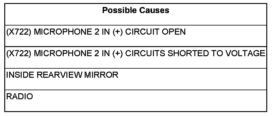 - Repair the (X722) Microphone 2 IN (+) circuit for a short to voltage.