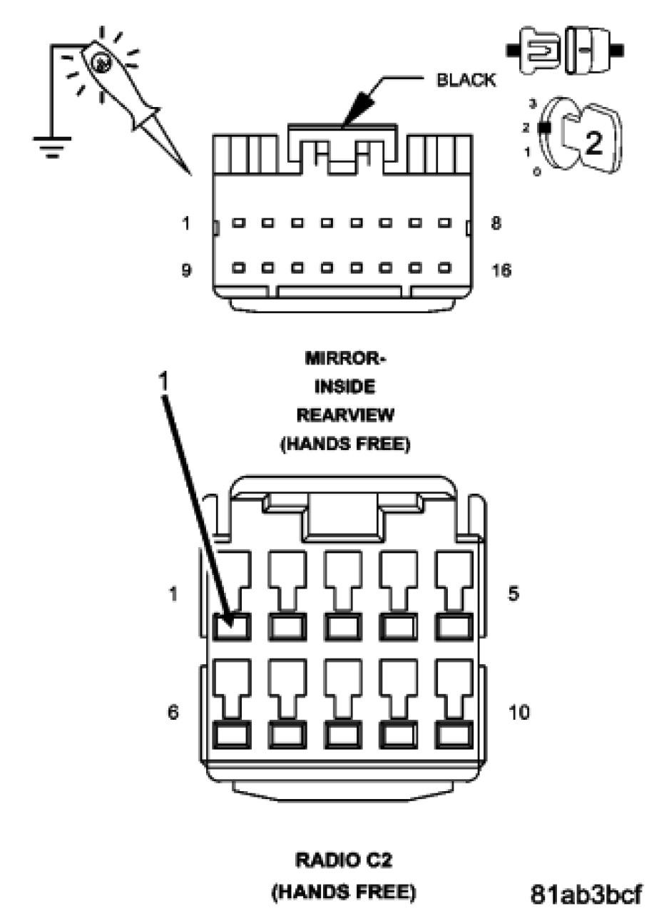 Measure the resistance of the (X722) Microphone 2 IN (+) circuit between the Radio C2 connector and the inside rearview mirror connector.
