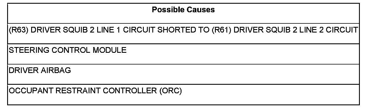 - Repair the (R63) Driver Squib 2 Line 1 circuit for a short to the (R61) Driver Squib 2 Line 2 circuit.