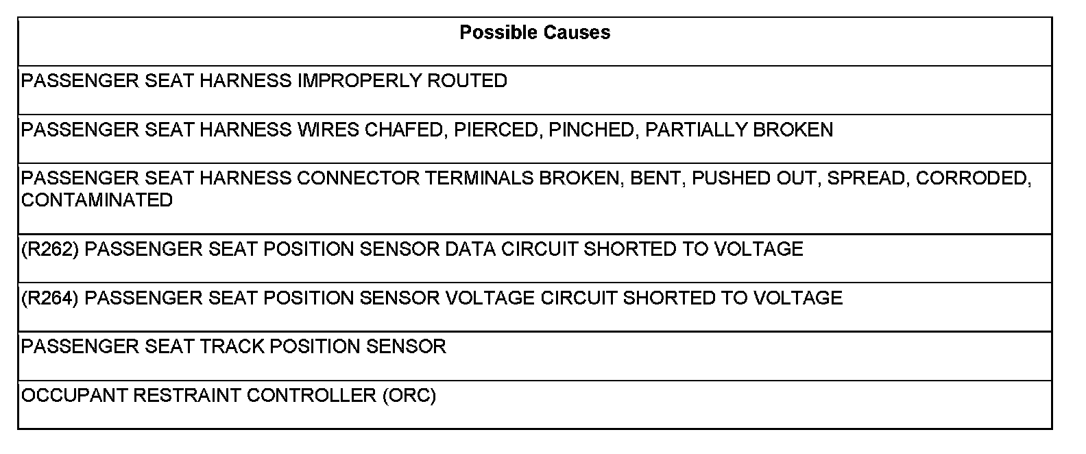 6.CHECK (R262) PASSENGER SEAT POSITION SENSOR DATA CIRCUIT AND (R264) PASSENGER SEAT POSITION SENSOR VOLTAGE CIRCUIT FOR A SHORT TO VOLTAGE