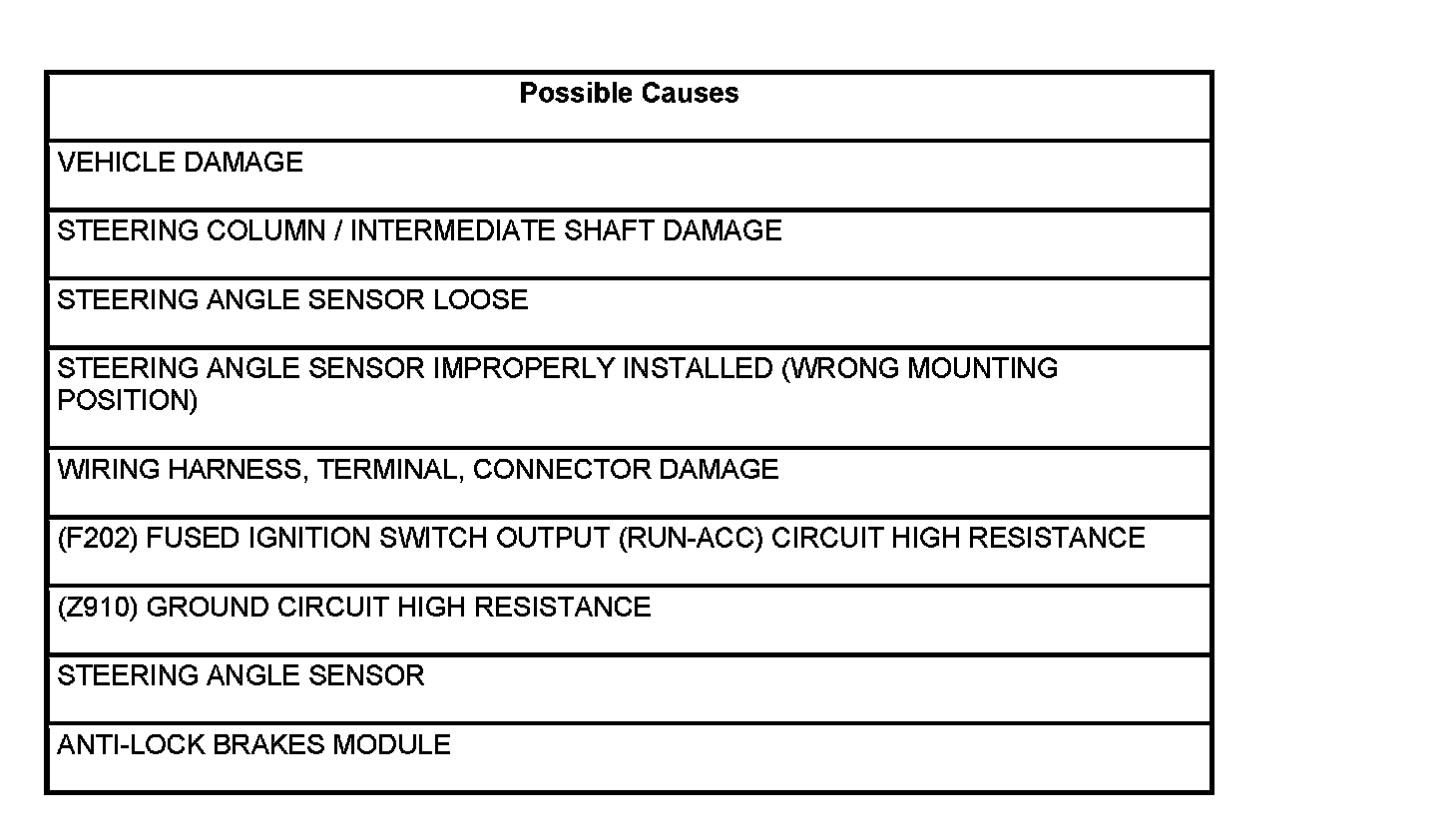 If the Anti-Lock Brake Module detects that the calculated steering wheel angle exceeds what is physically possible.