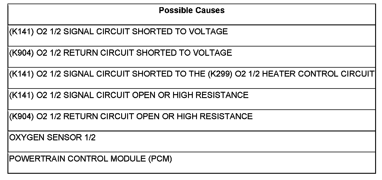 - Repair the (K141) O2 1/2 Signal circuit for a short to voltage.