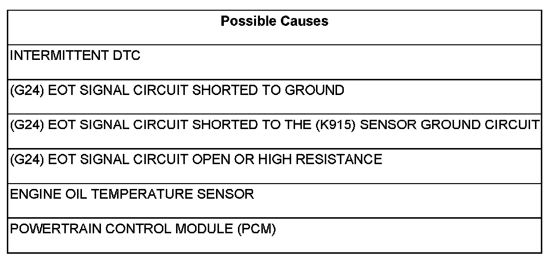 - Repair the (G24) EOT Signal circuit for a short to the (K915) Sensor Ground circuit.