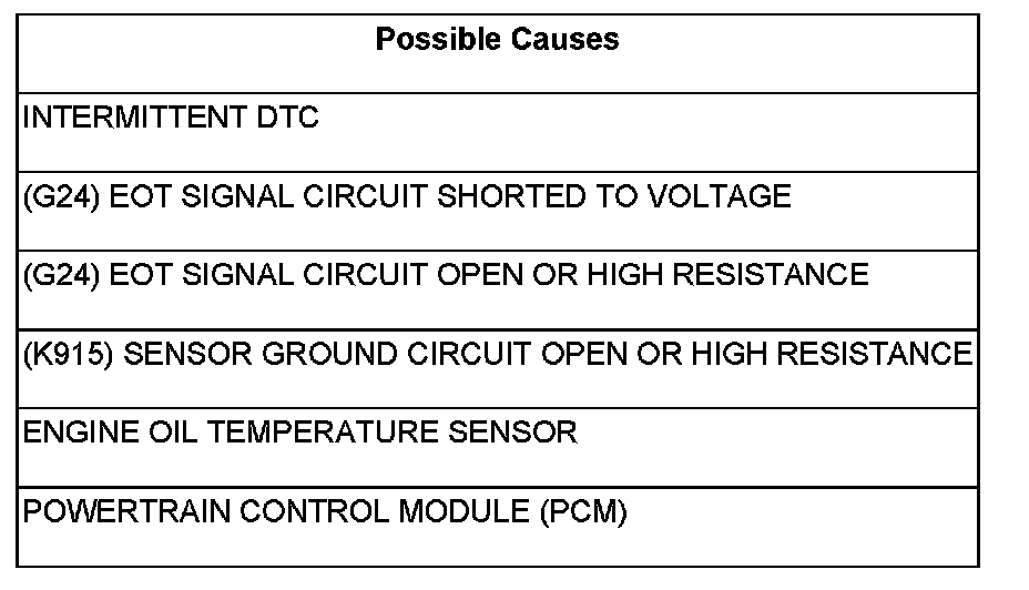 Measure the voltage of the (G24) EOT Signal circuit in the Engine Oil Temperature Sensor harness connector.