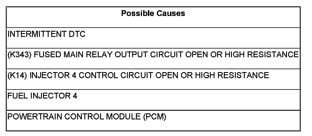 - Repair the (K14) Injector 4 Control circuit for an open circuit or high resistance.