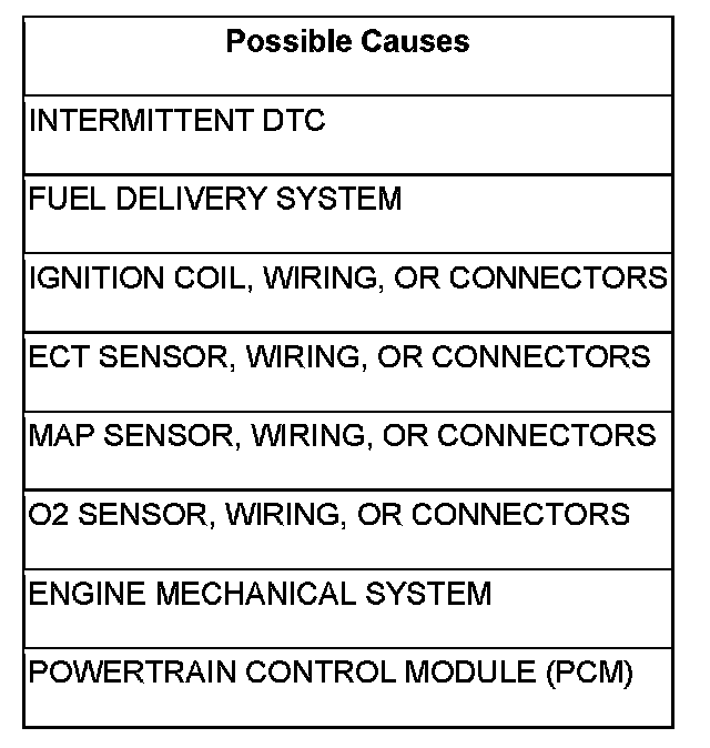 NOTE: Misfire may occur and may not be caused by component failure. Any of the following conditions can cause a misfire: