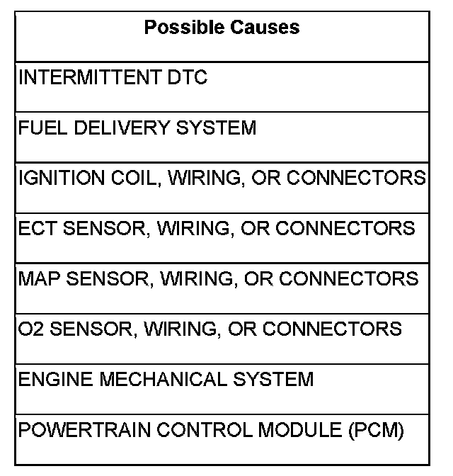 NOTE: Misfire may occur and may not be caused by component failure. Any of the following conditions can cause a misfire: