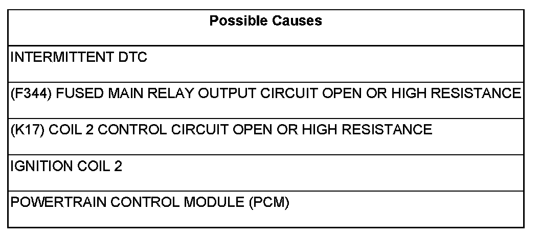 Measure the resistance of the (K17) Coil 2 Control circuit between the Ignition Coil 2 harness connector and the Powertrain Control Module (PCM) harness connector.