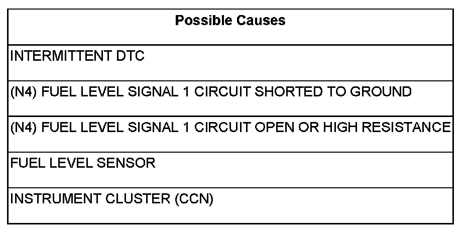 - Repair the (N4) Fuel Level Signal 1 circuit for an open circuit or high resistance.