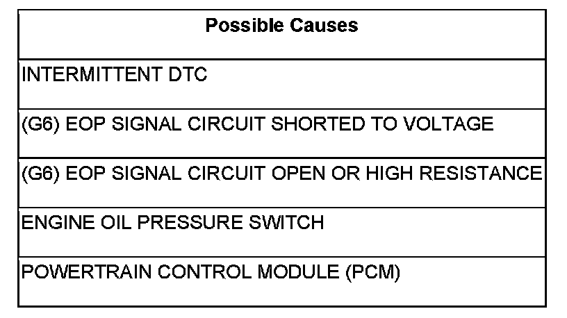 - Repair the (G6) EOP Signal circuit for a short to voltage.