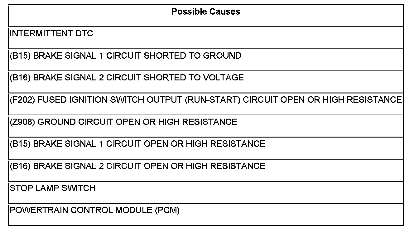- Repair the (B16) Brake Signal 2 circuit for a short to voltage.