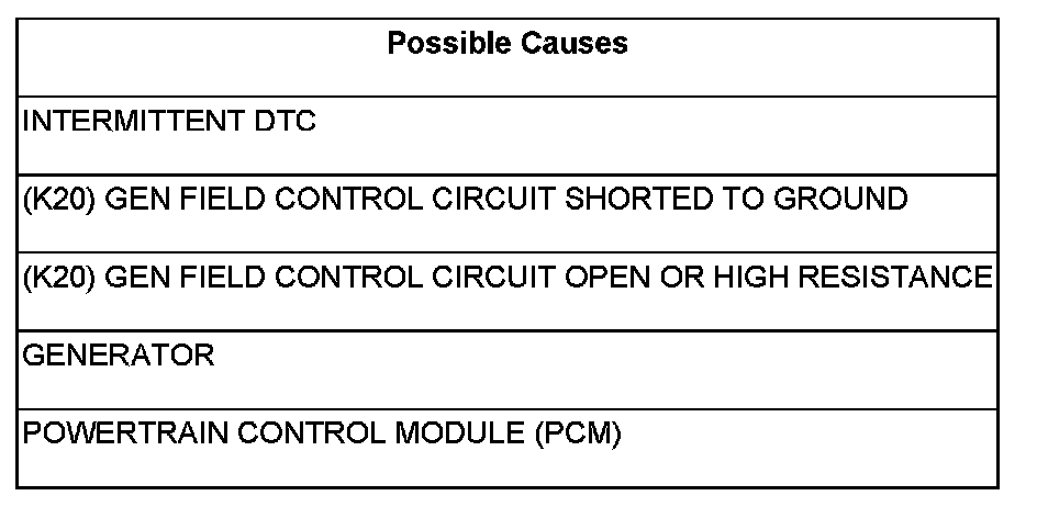 - Repair the (K20) Gen Field Control circuit for an open circuit or high resistance.